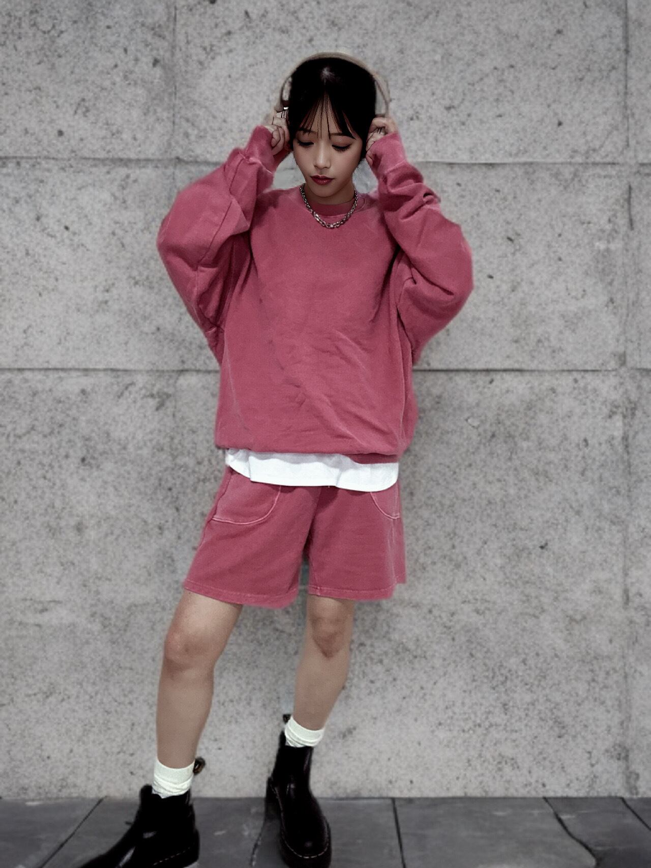ヴィンテージ感のある色合いが魅力のピグメント加工スウェット。