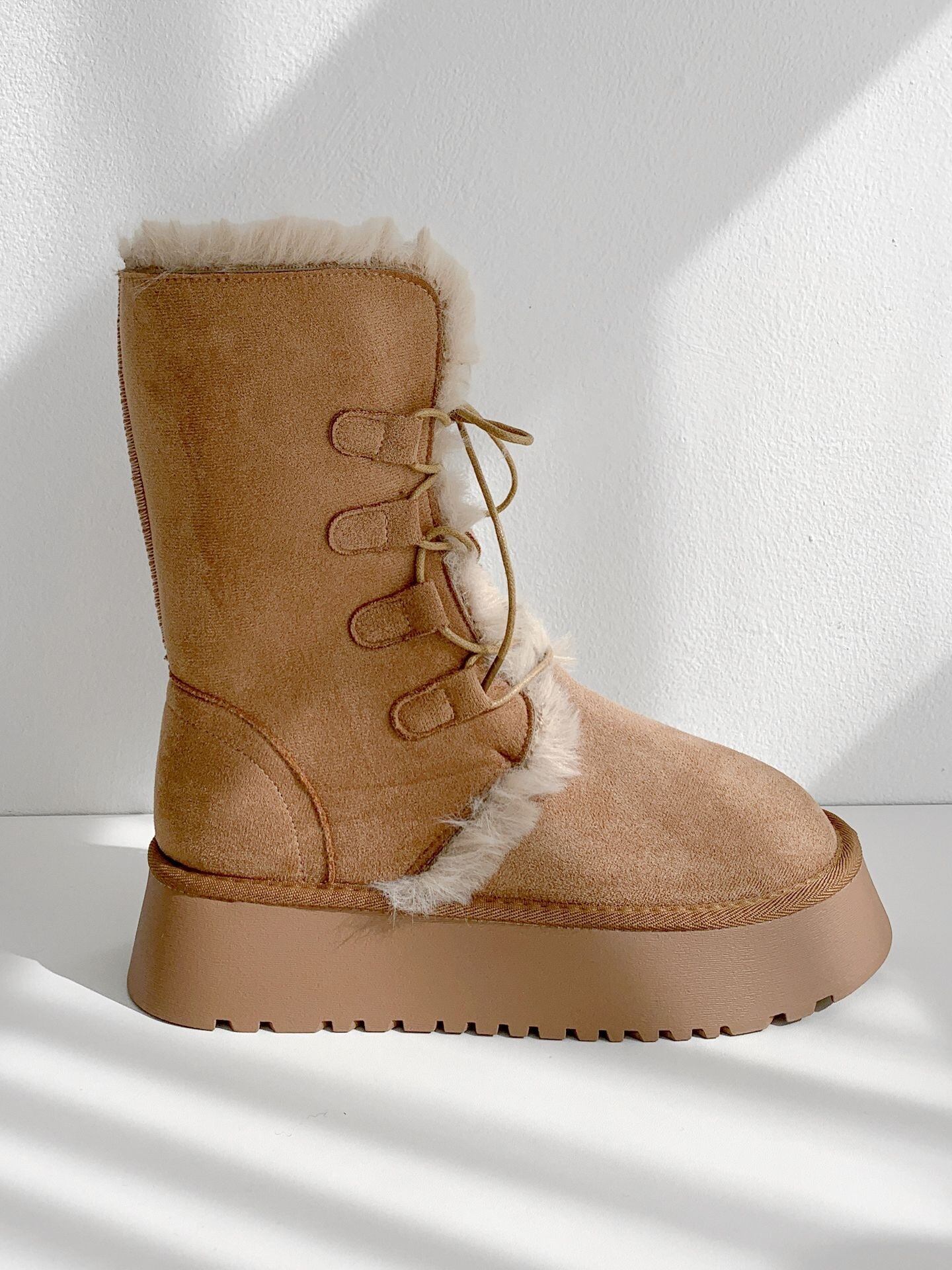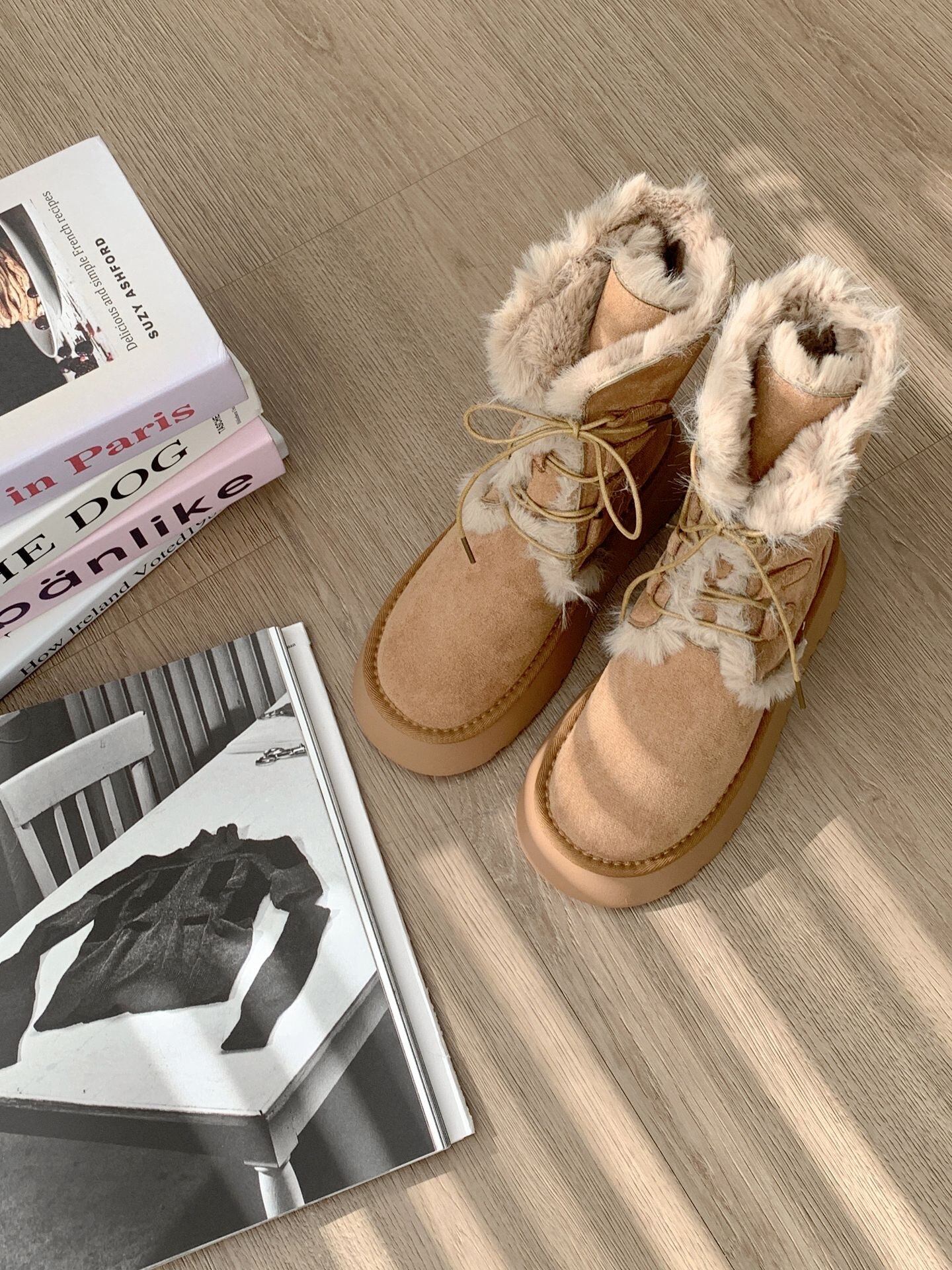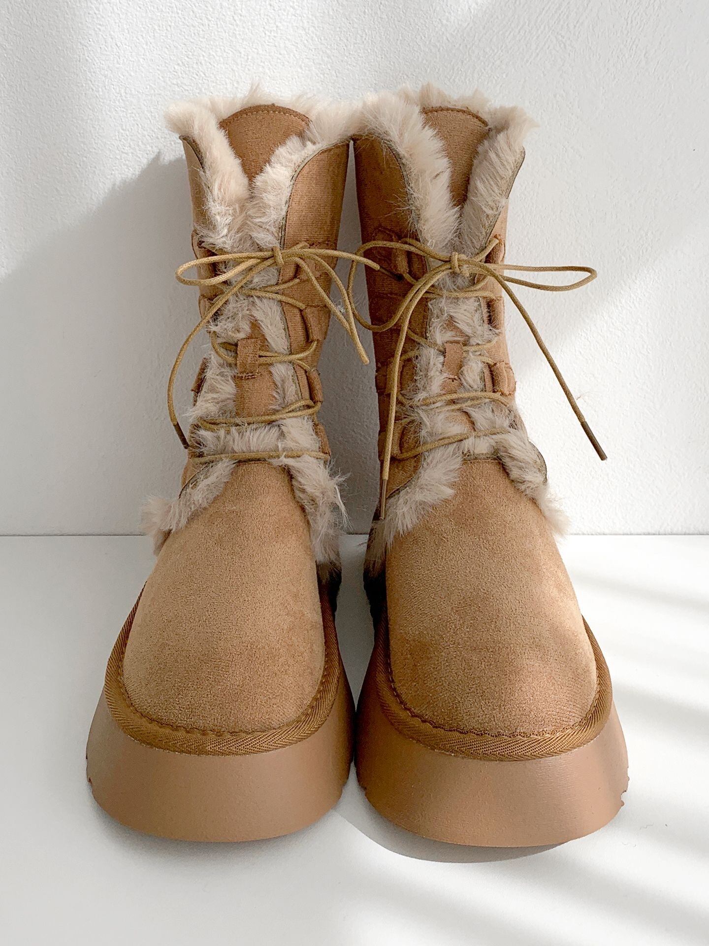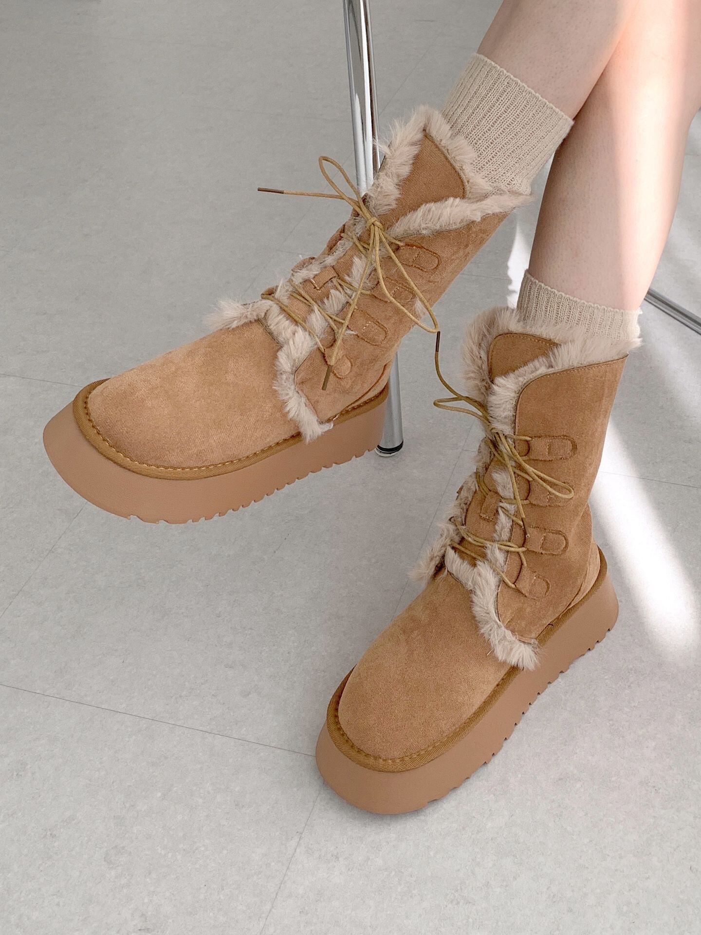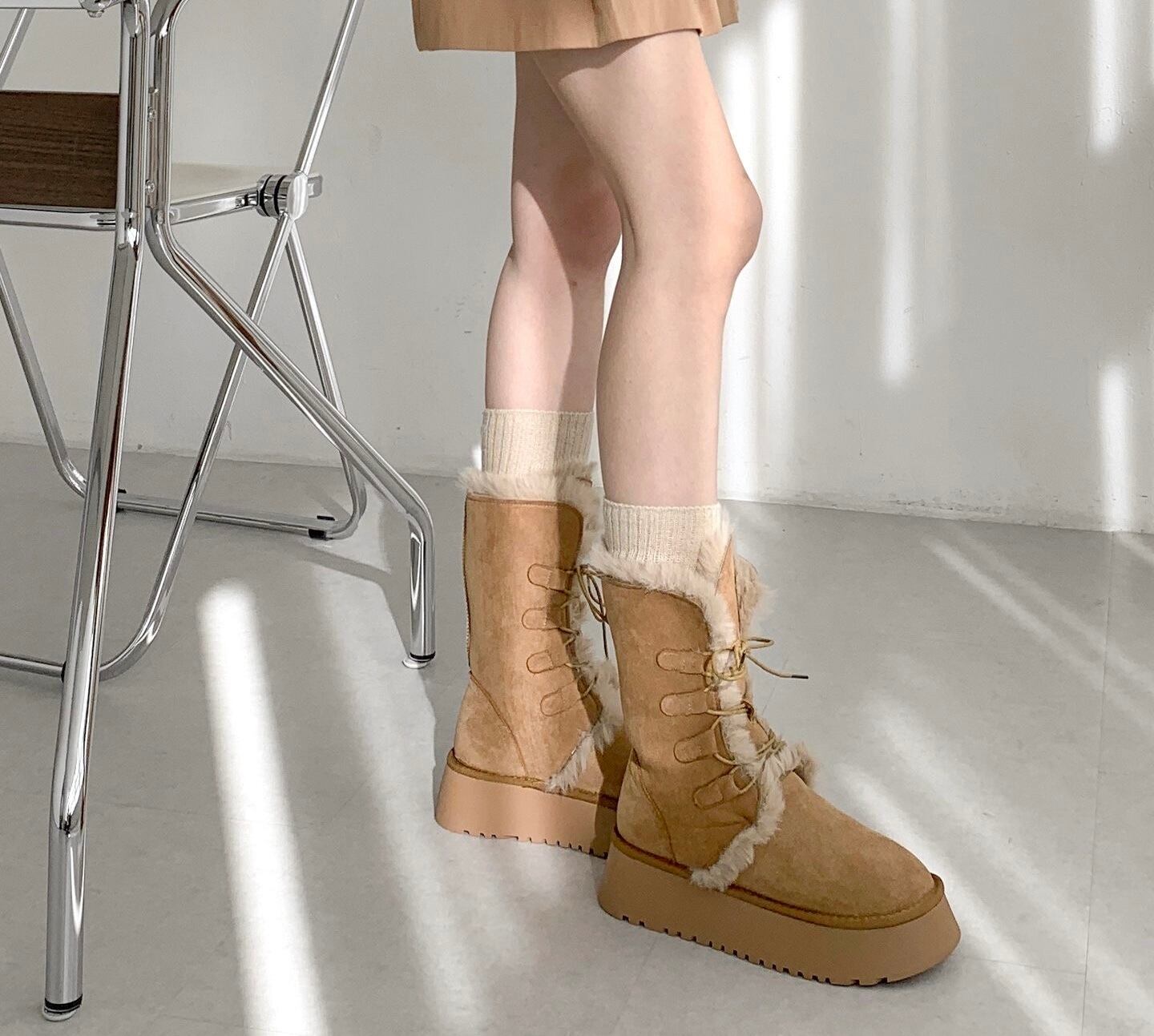 ふわふわのファーが足元を包み込む、冬にぴったりのムートンブーツ。