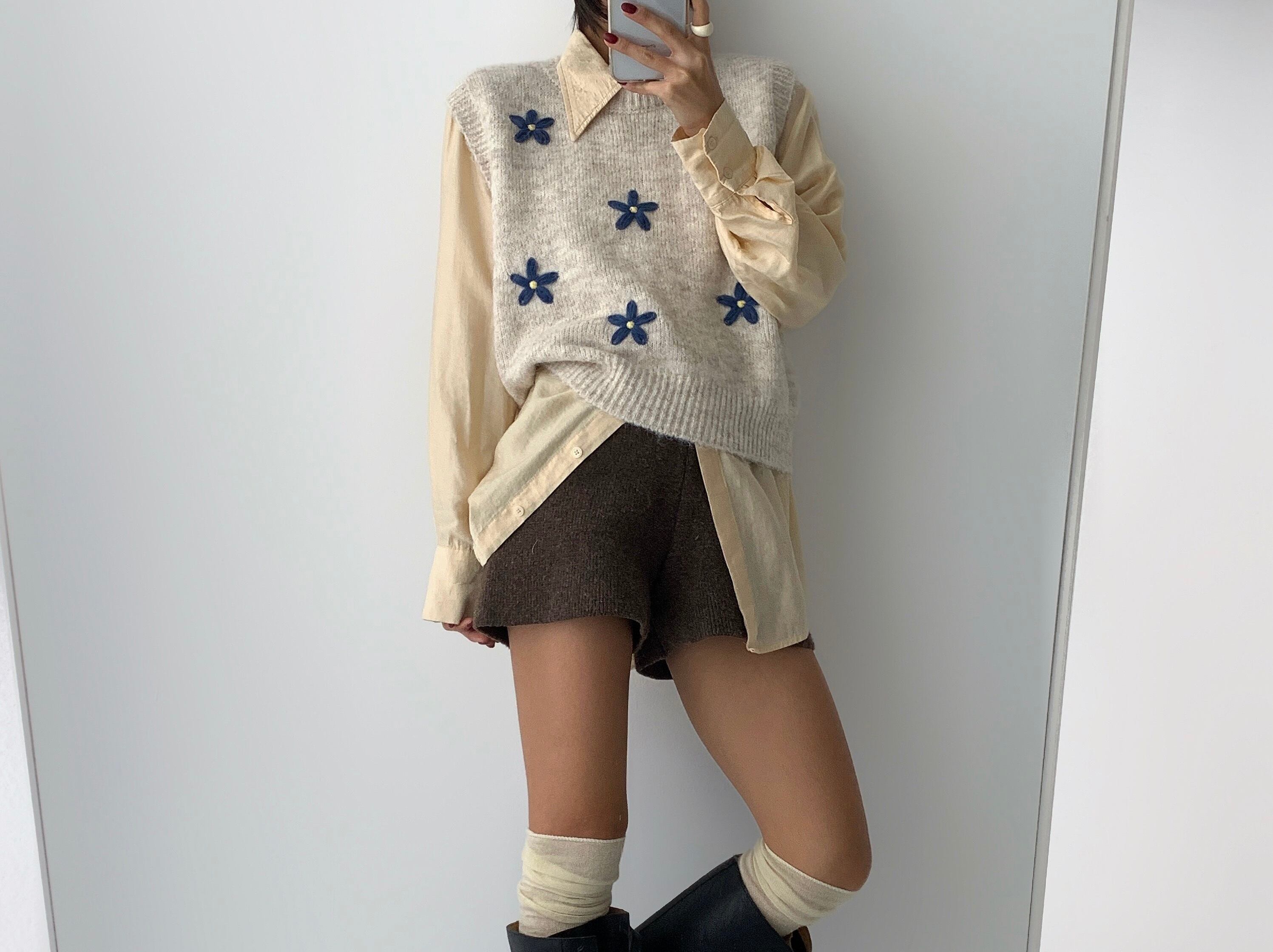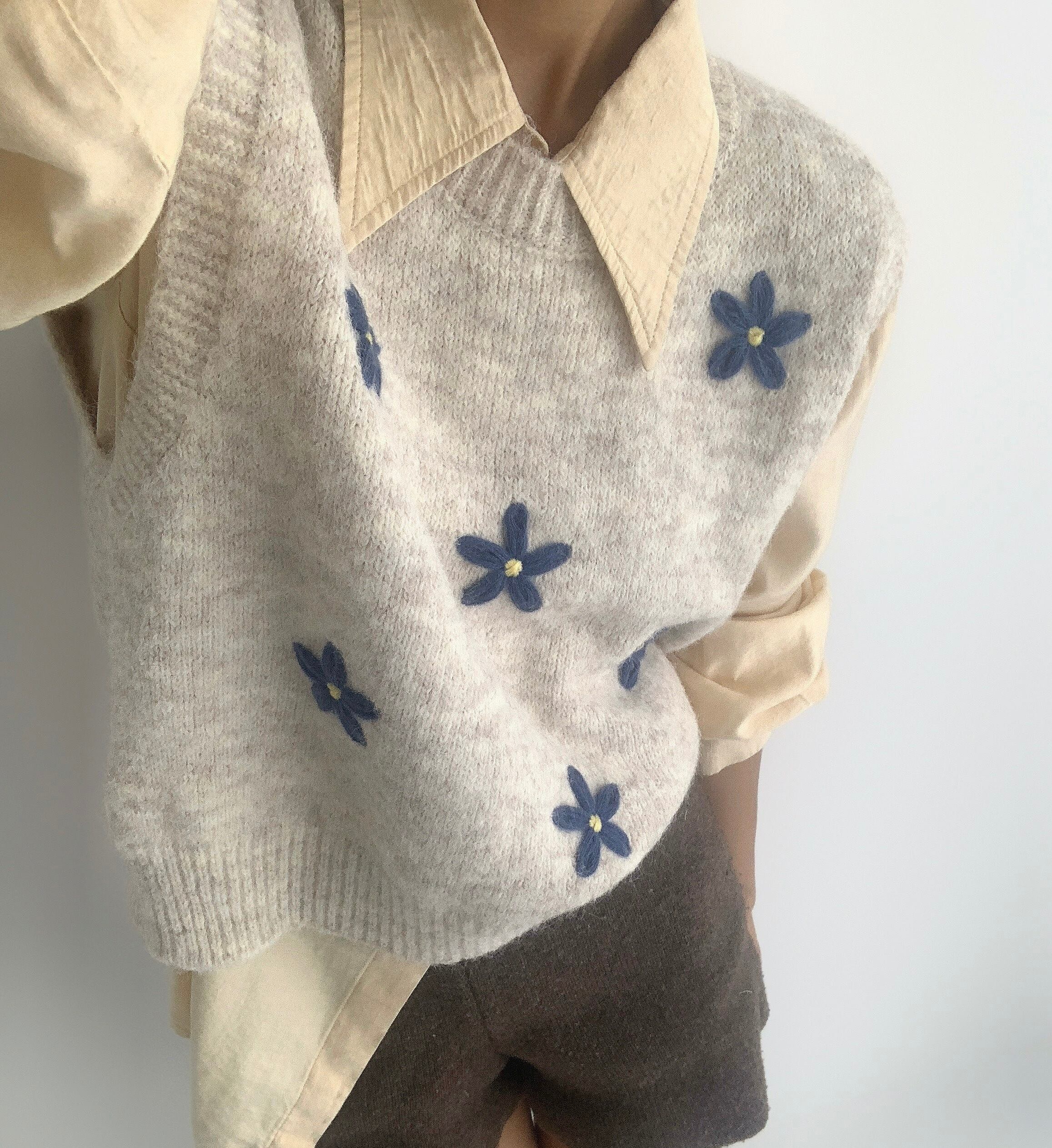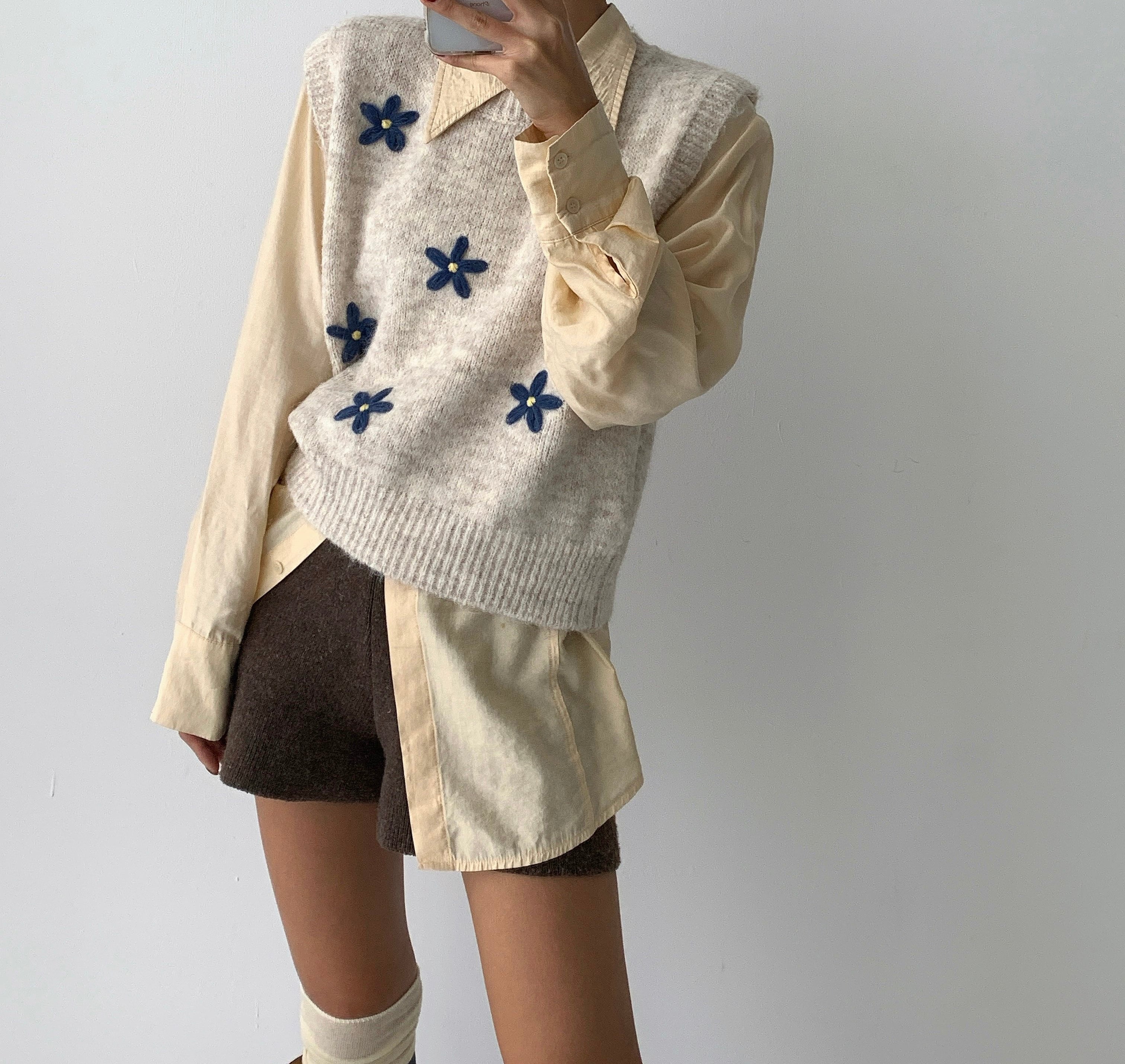 花刺繍ニットベスト