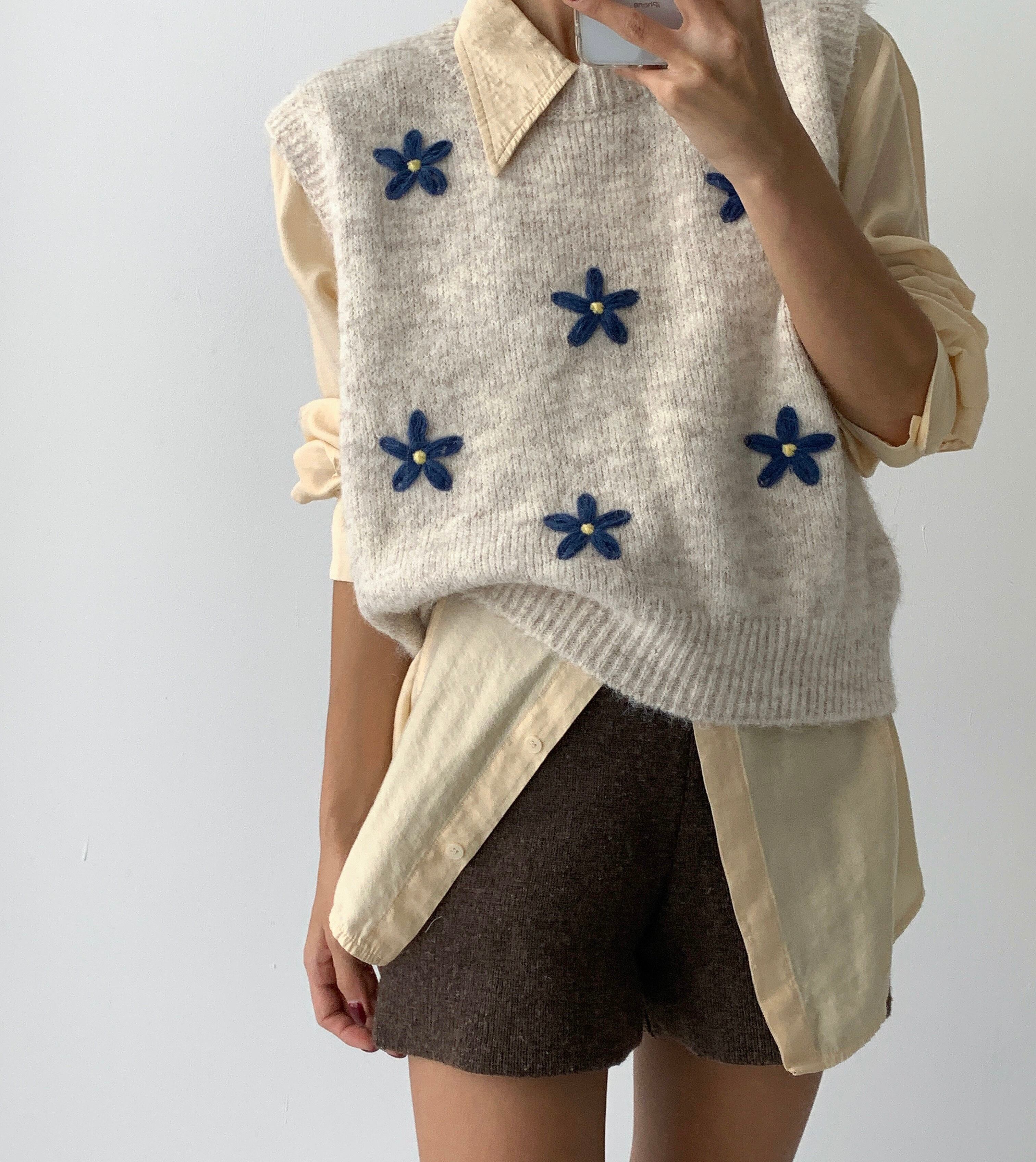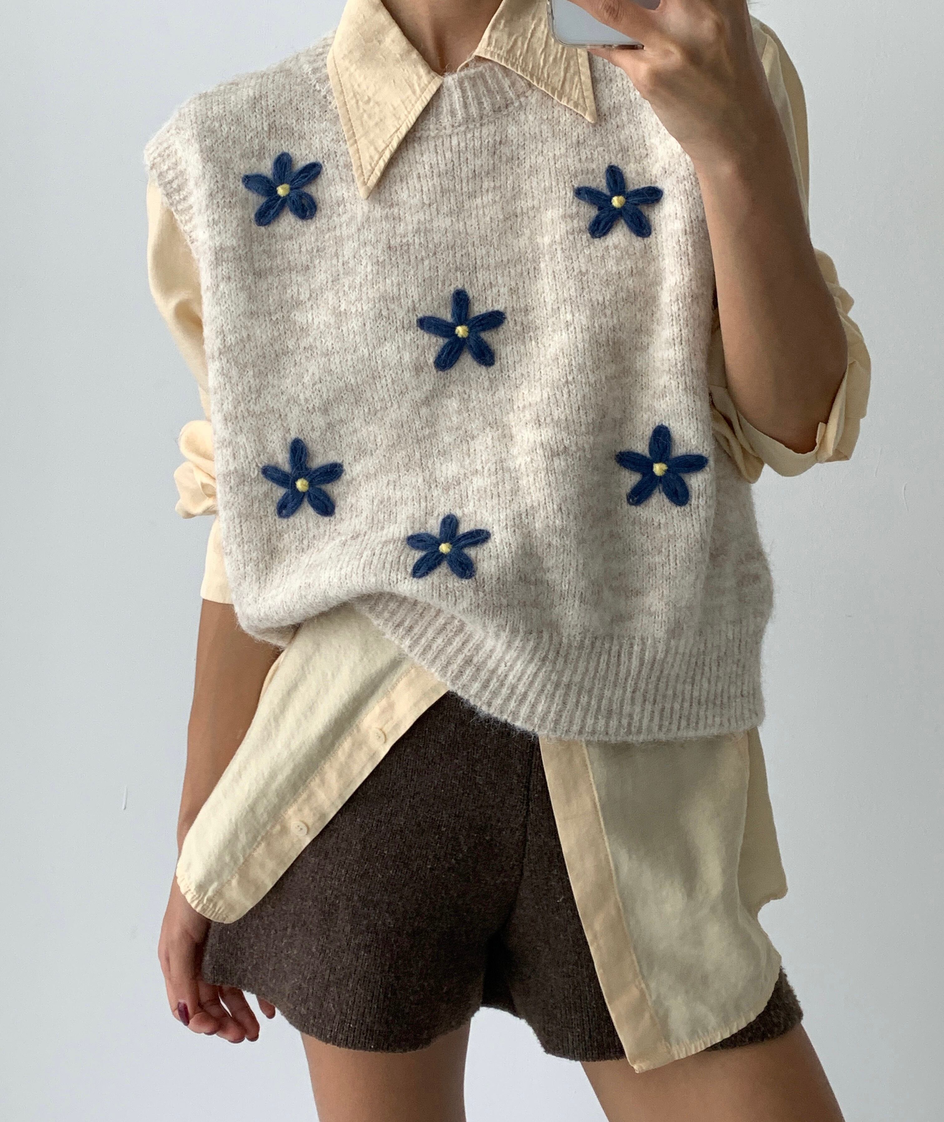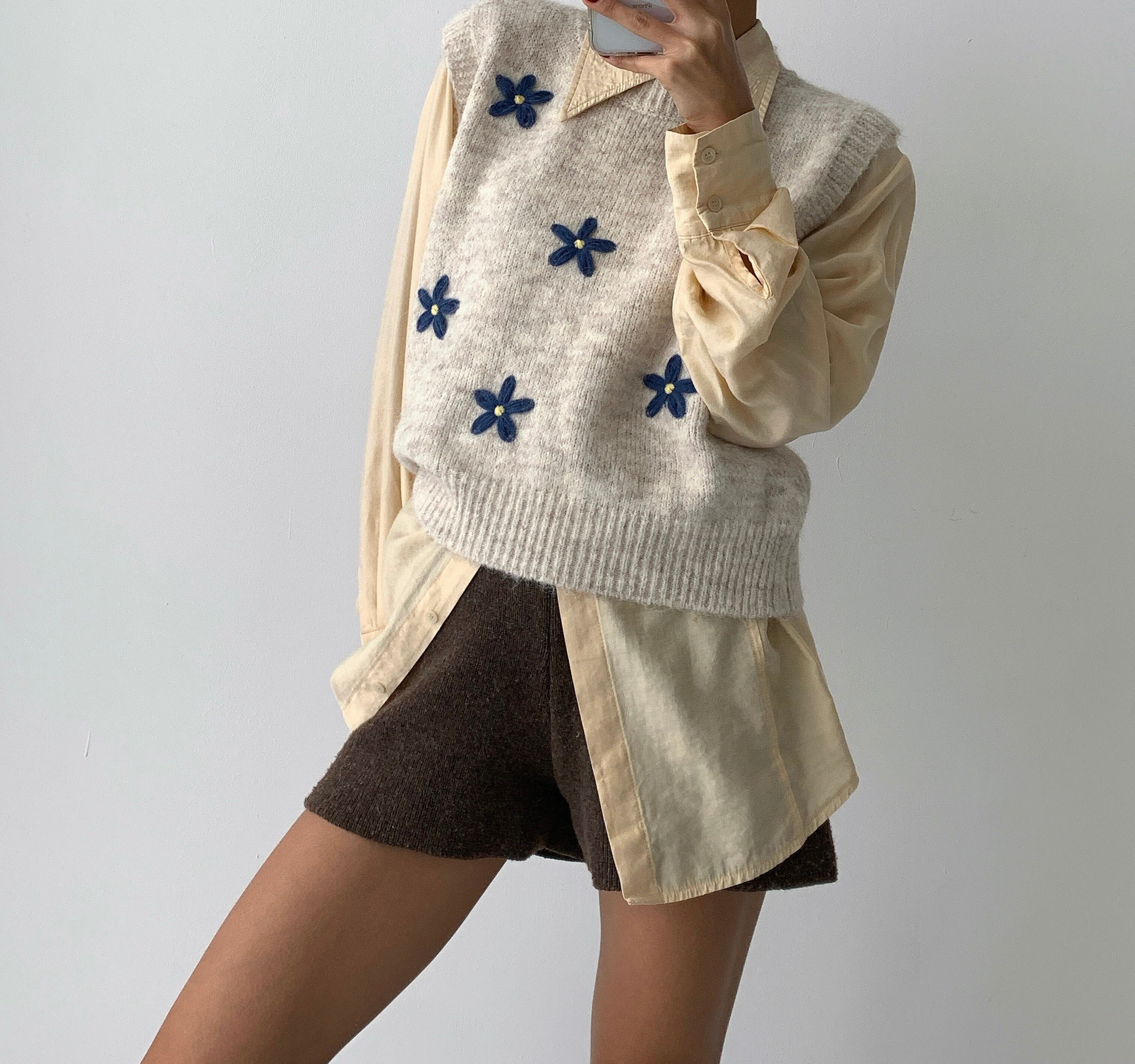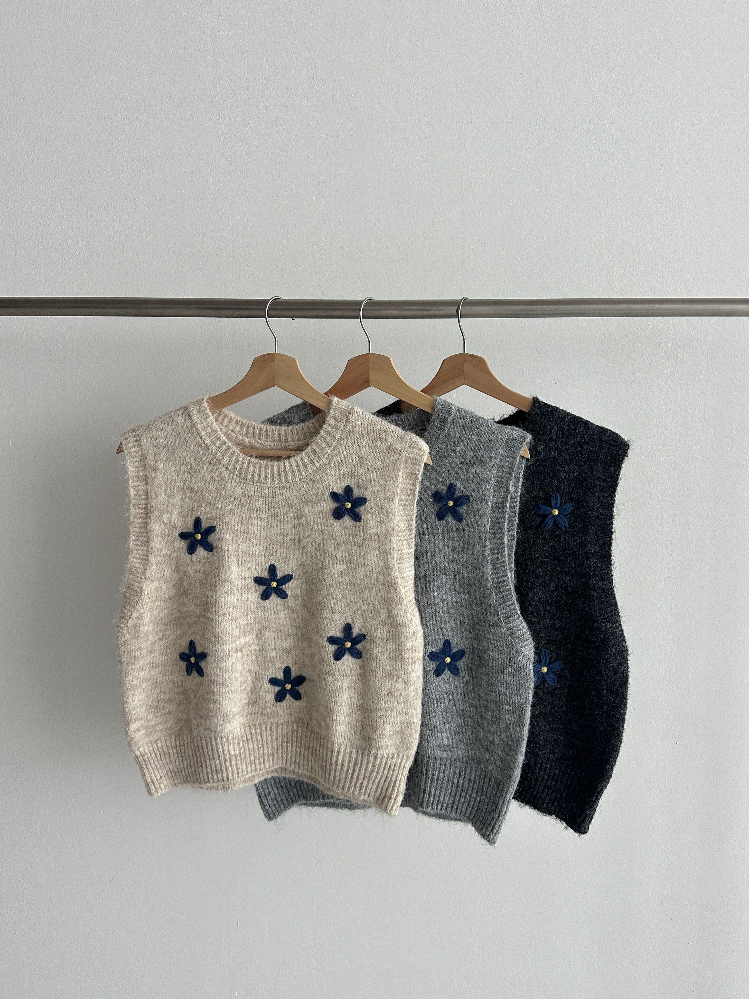 花刺繍ニットベスト