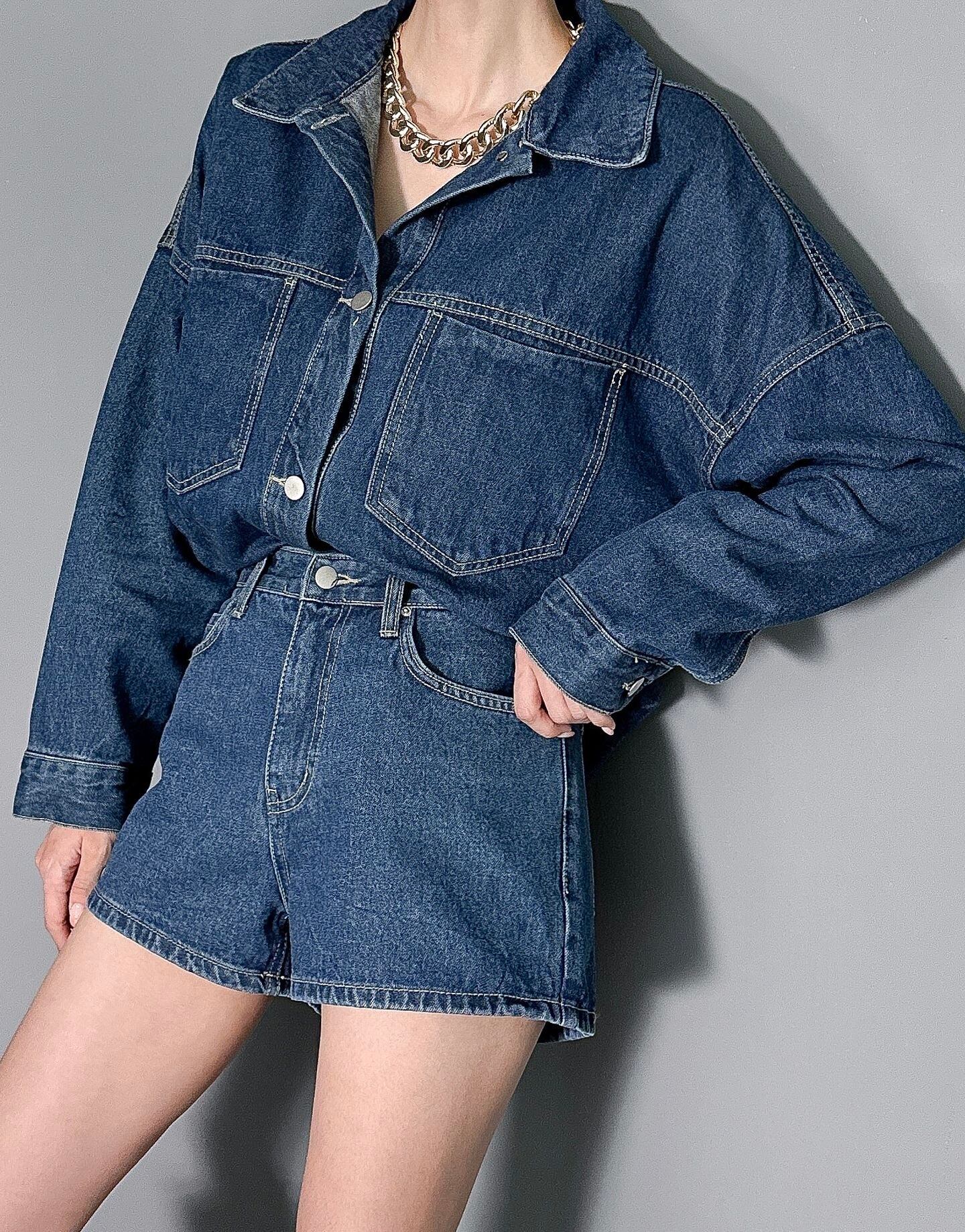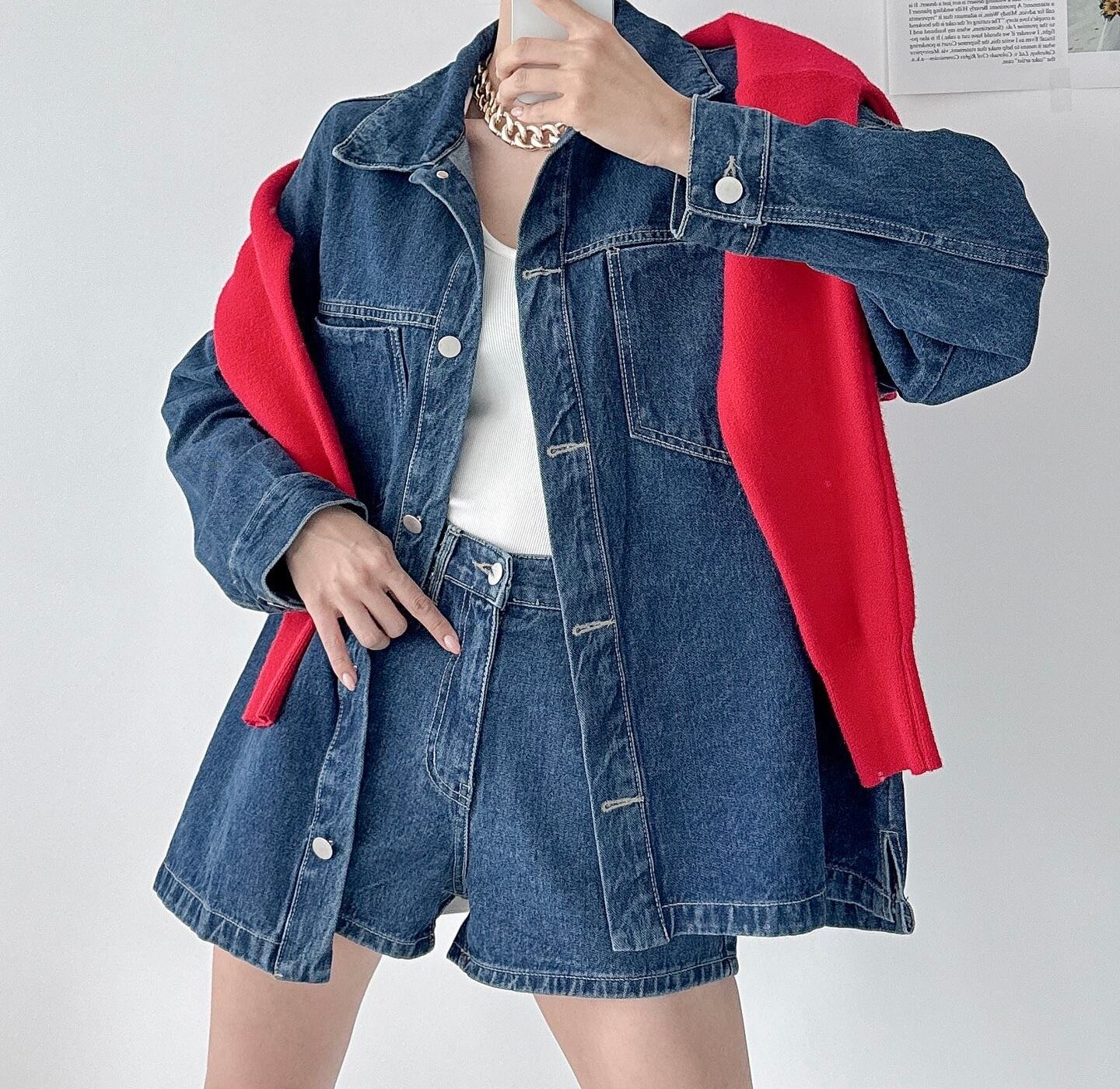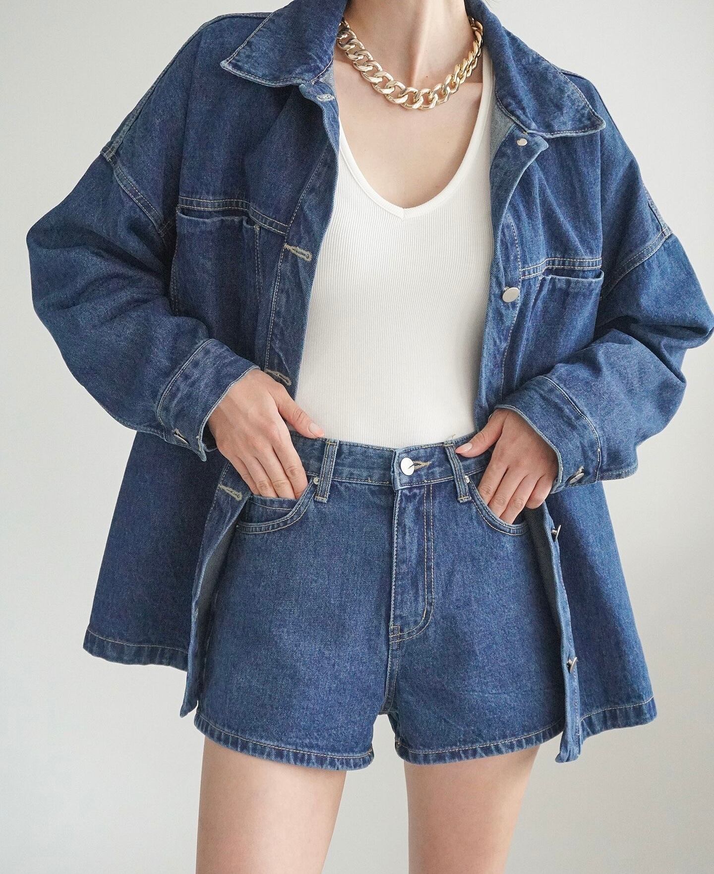 デニムオーバーフィットジャケット&ショートパンツ セットアップ