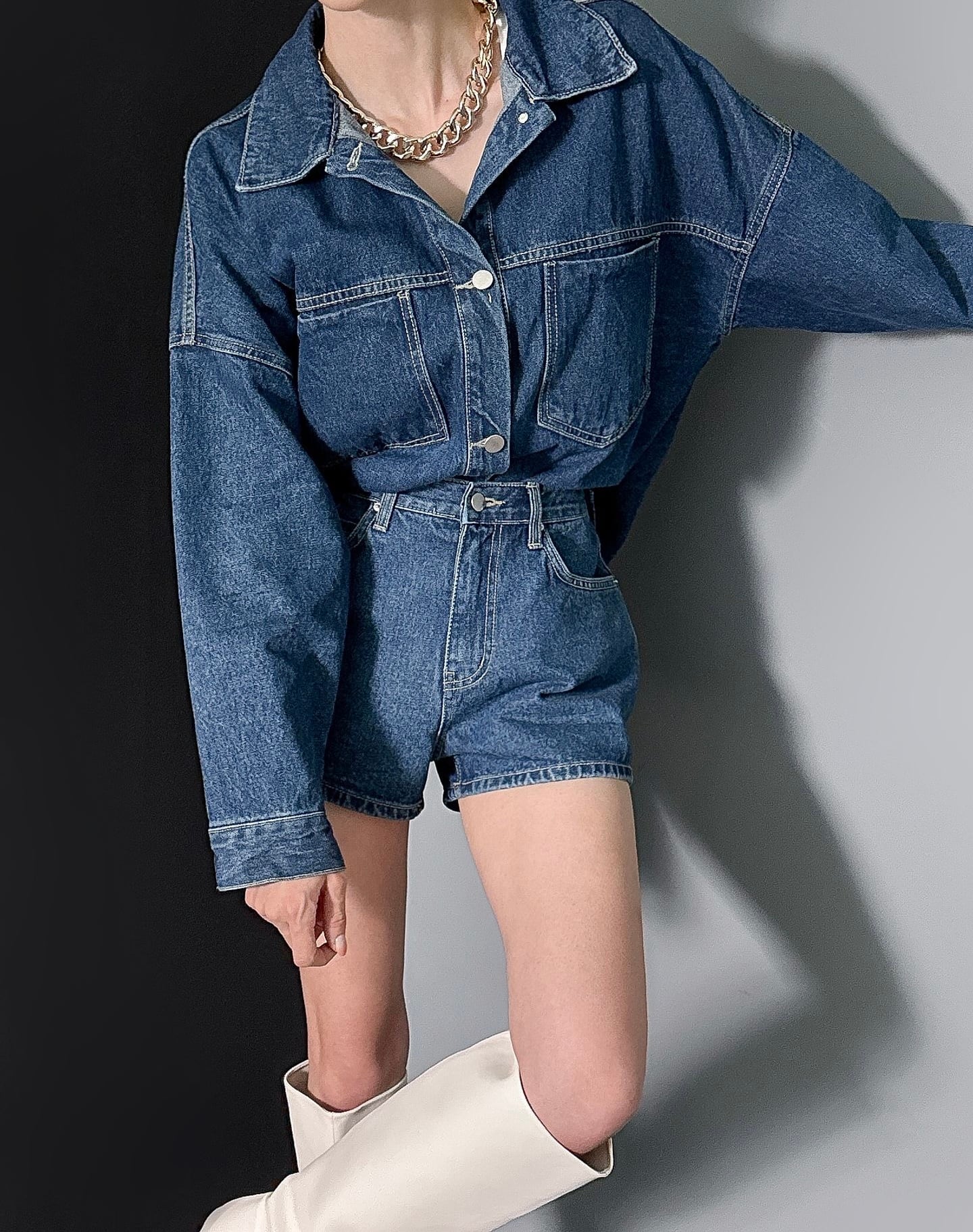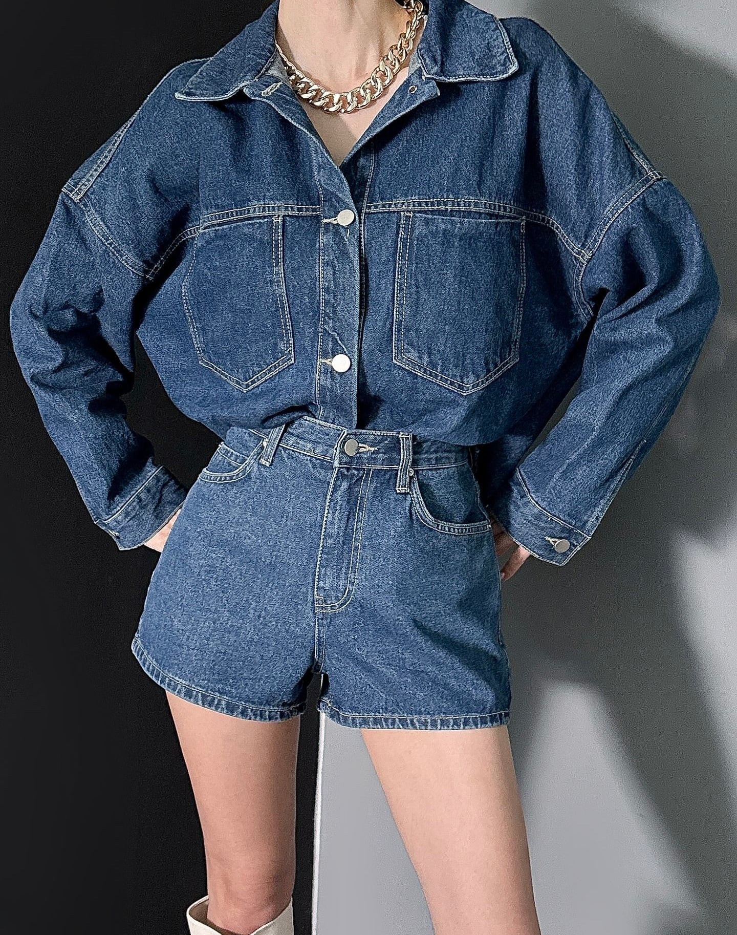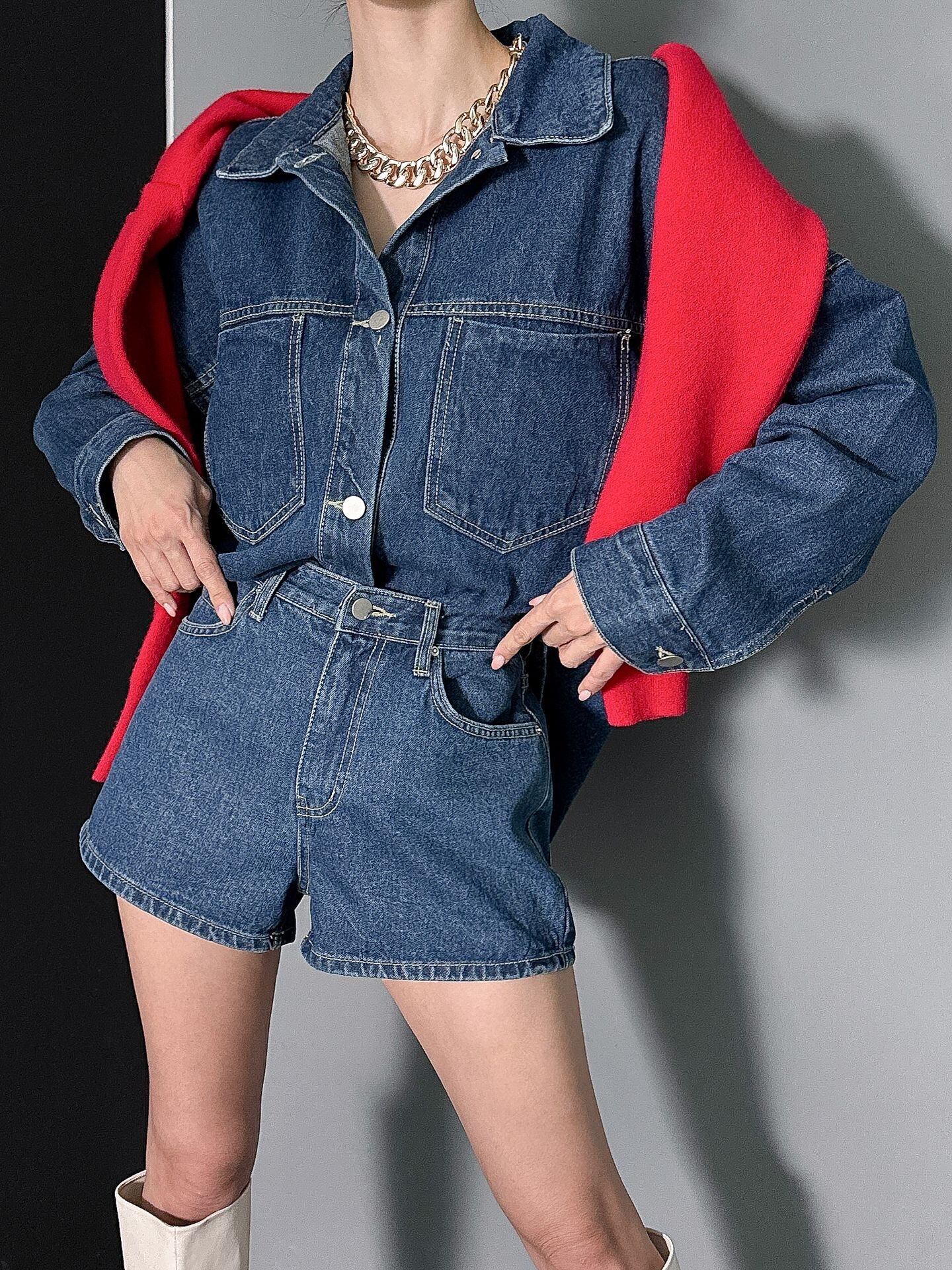 デニムオーバーフィットジャケット&ショートパンツ セットアップ