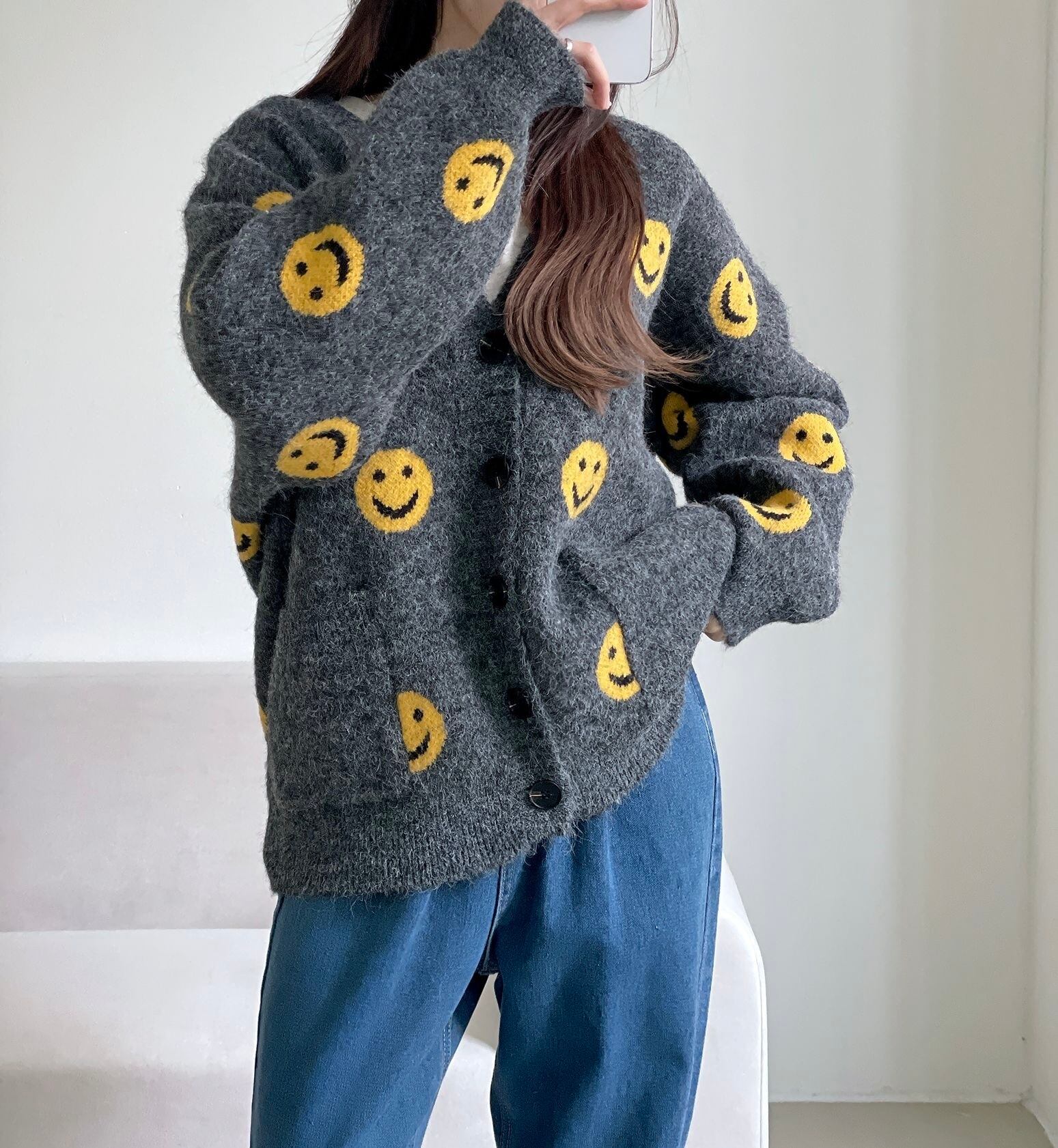 心温まるデザインが魅力のスマイルカーディガン。柔らかなニット素材を使用し、快適な着心地を実現しました。ユニークなスマイルモチーフが、あなたのデイリースタイルを一層楽しく彩ります