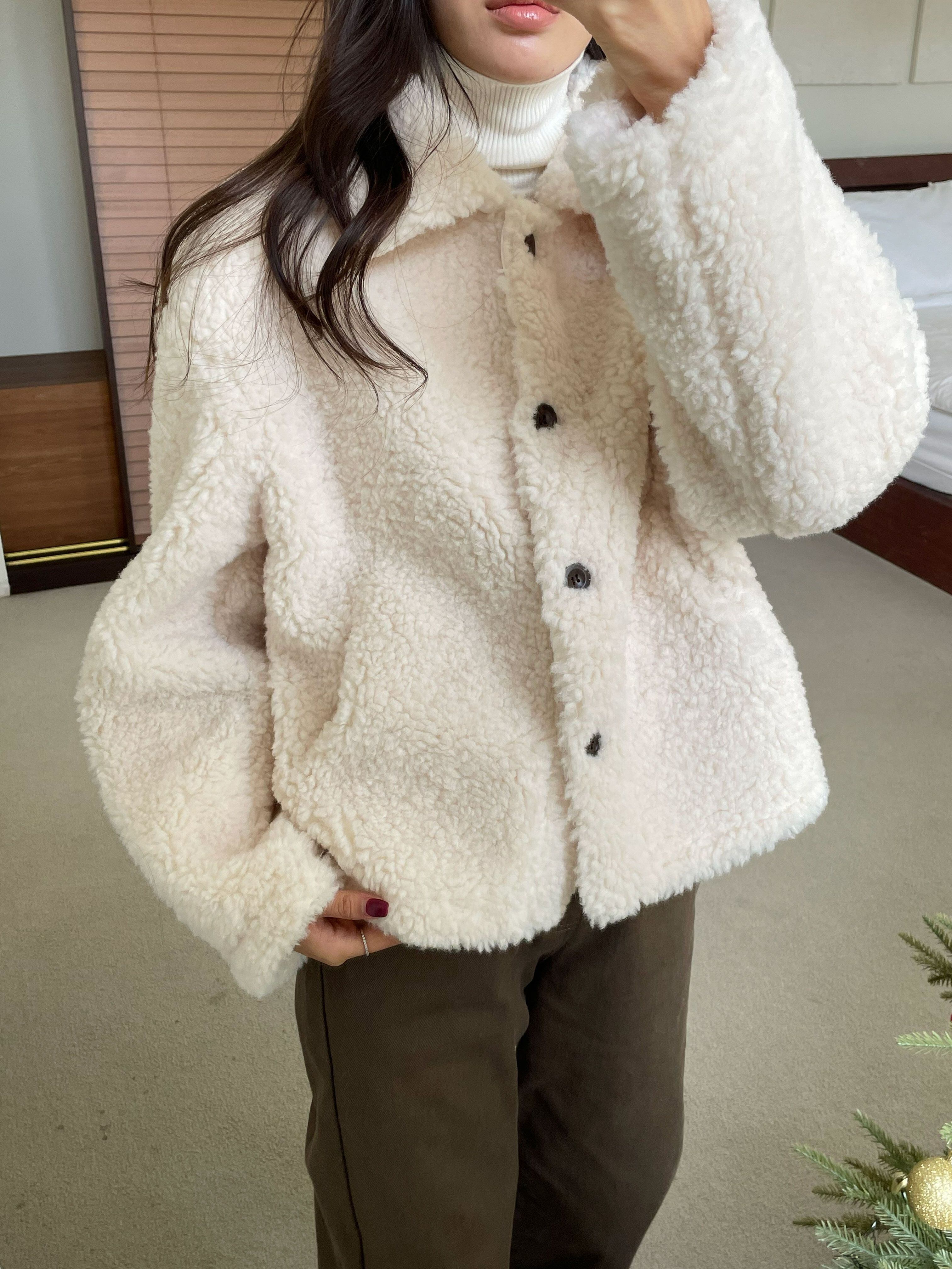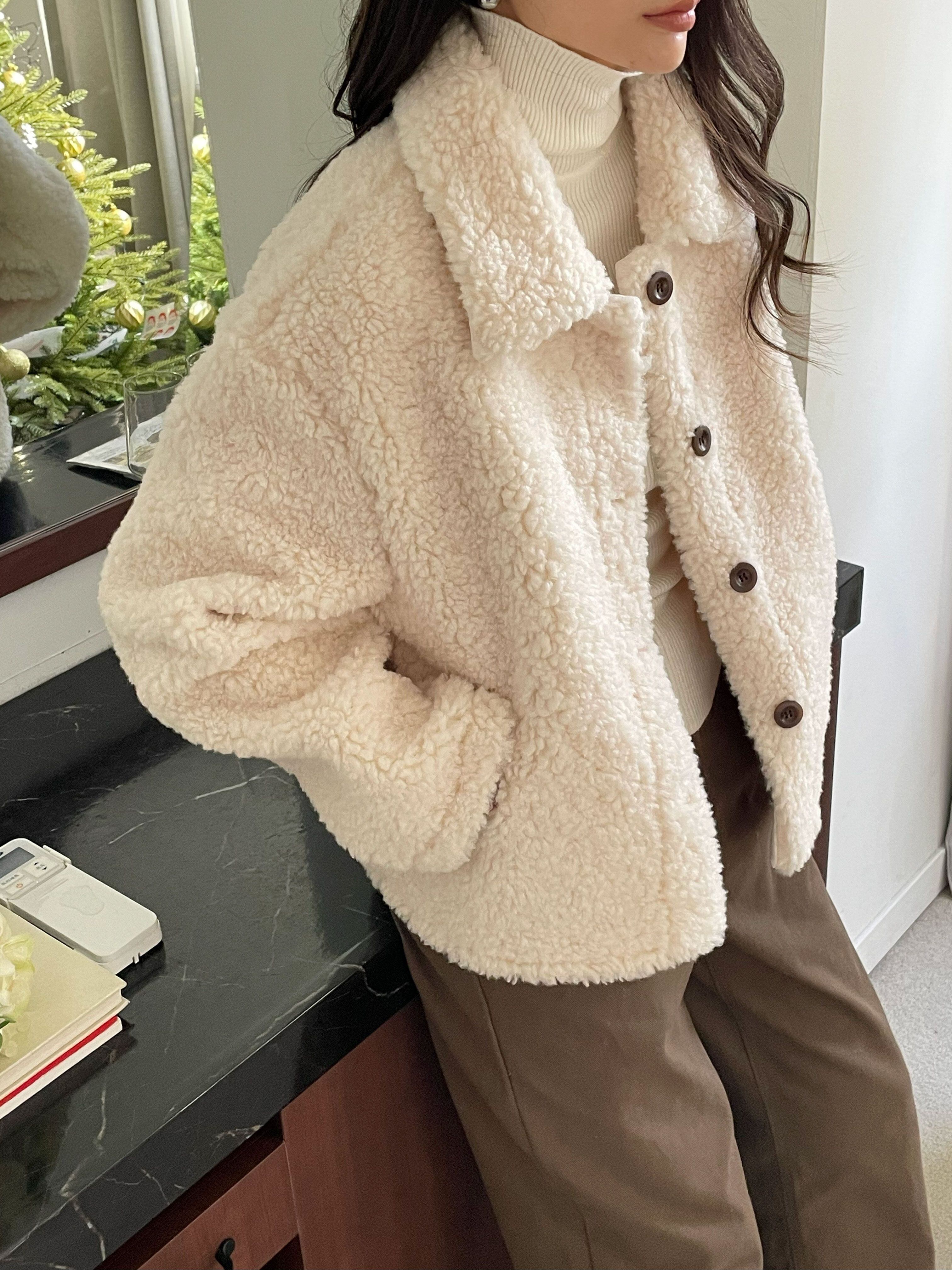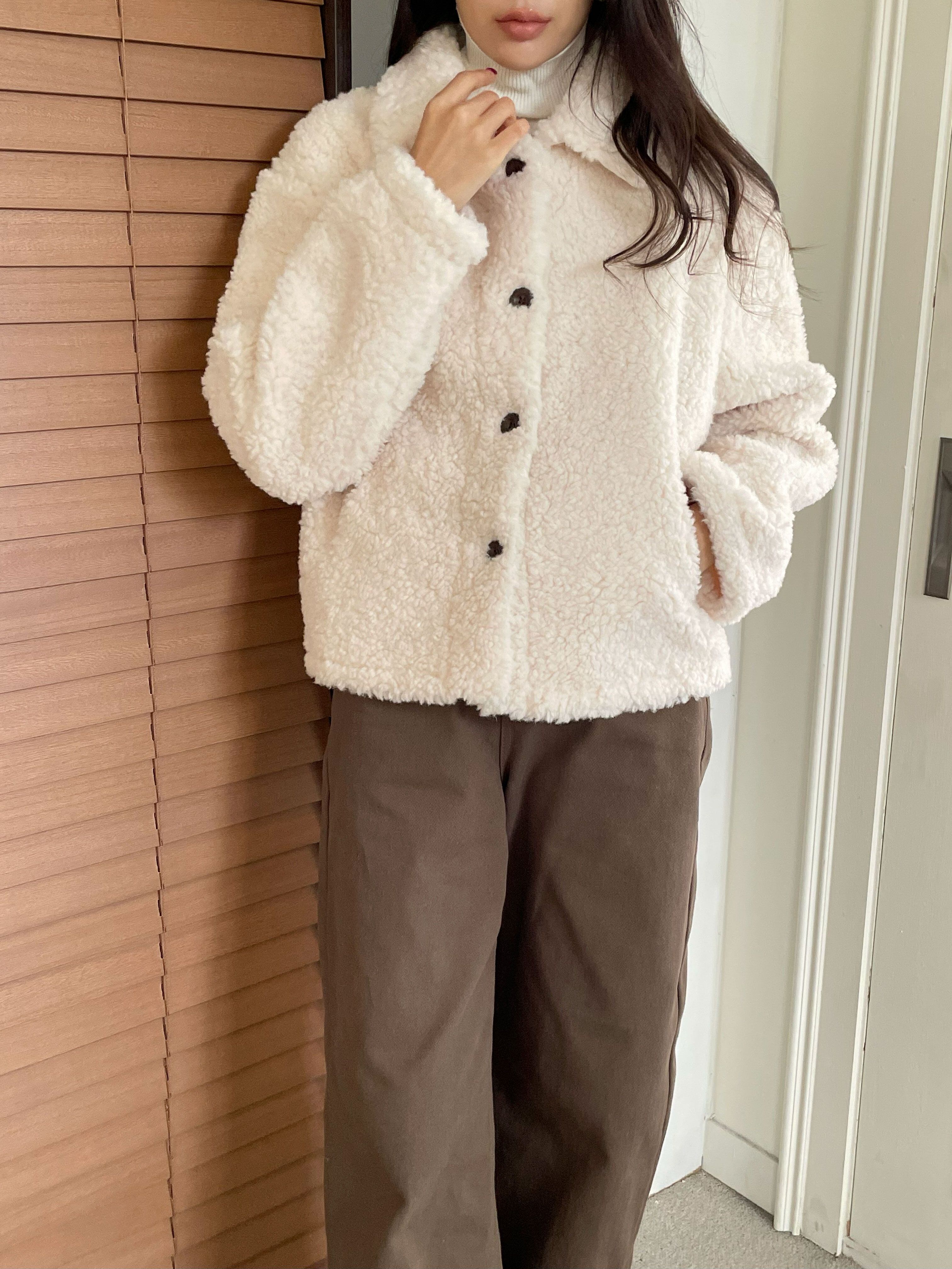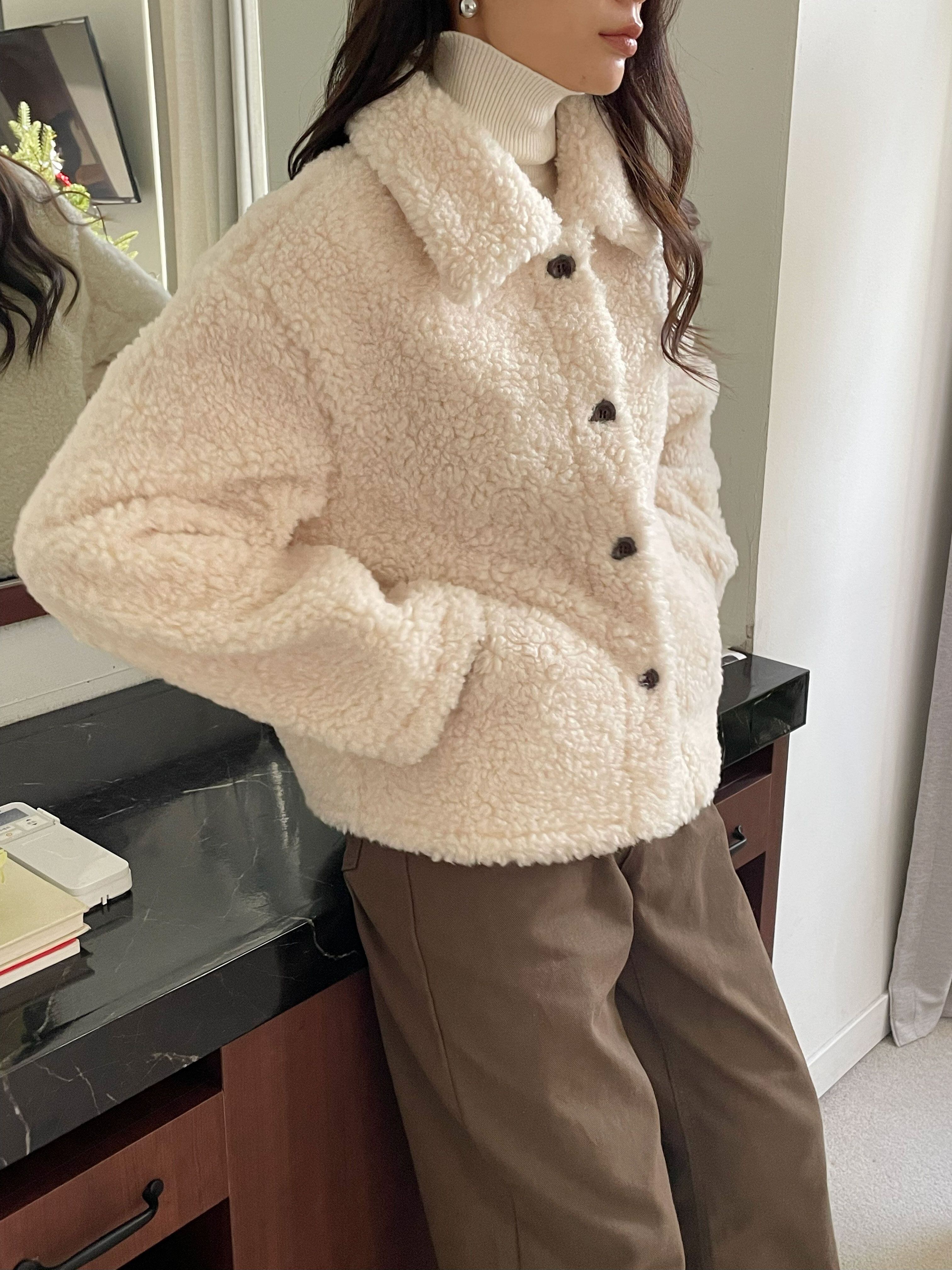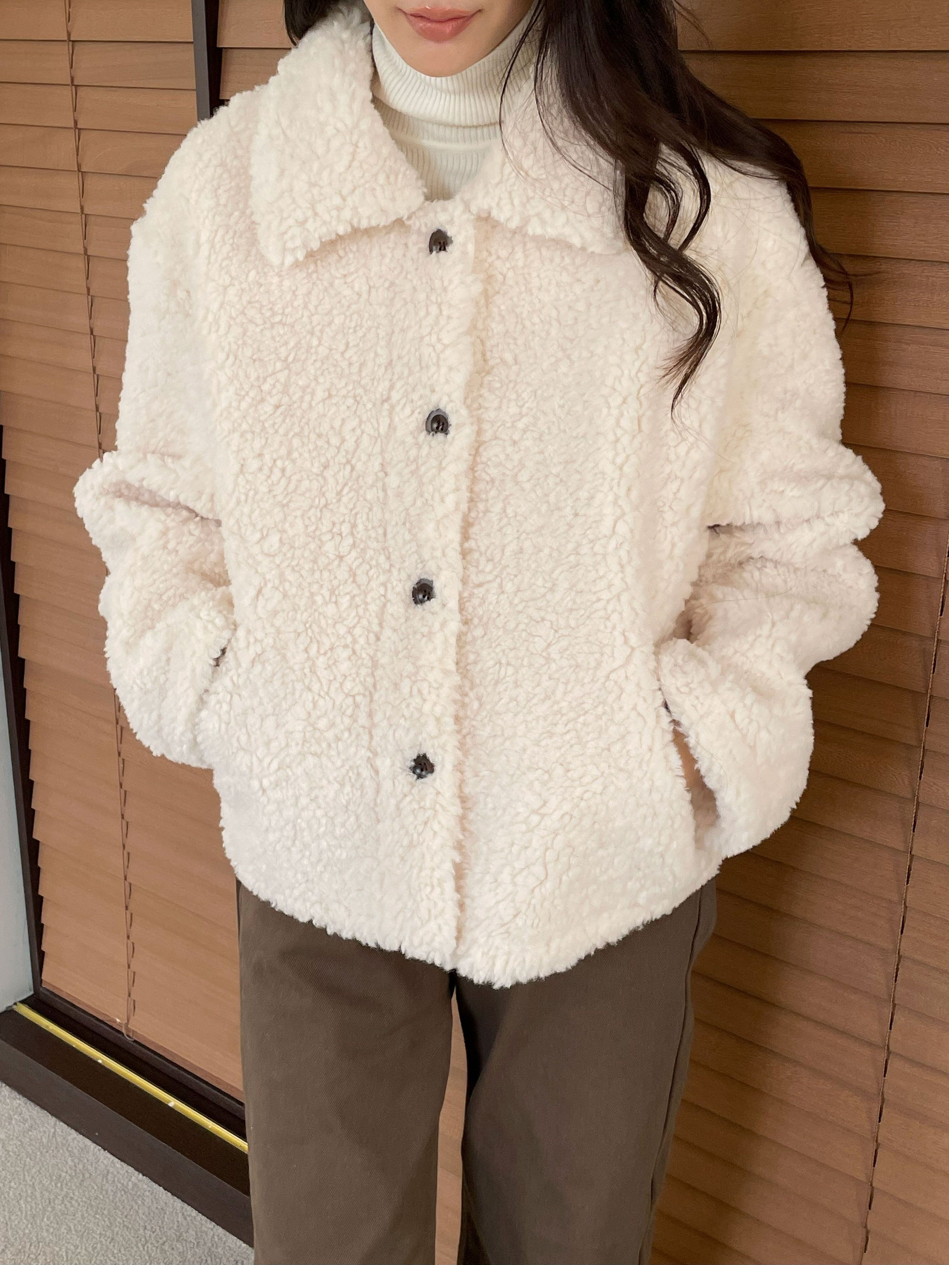 軽やかでロマンティックな雰囲気を醸し出すムートンカラージャケット。柔らかいムートン素材を使用し、肌触りが良く心地よい着用感を提供します。シンプルでありながら、存在感のある配色がコーディネートに華やかさをプラスする一着です!